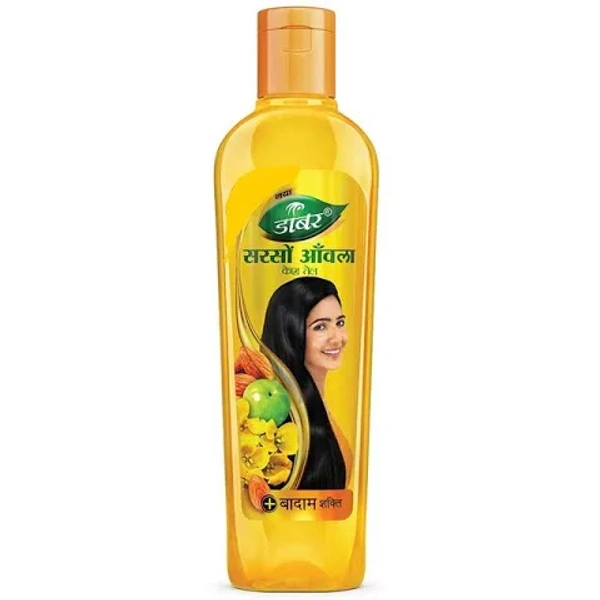 Dabur Sarso Amla Hair Oil - For Longer & Stronger Hair, 100% Natural, Enriched With Almond,